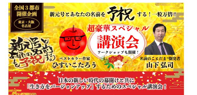 【大阪】ひすいこたろう&山下弘司コラボ講演会 新元号とあなたの名前を予祝する~一粒万倍!望む未来を手に入れるあの話